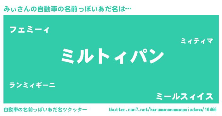 | 胡散臭い通販商品みたいなあだ名 | 『信頼と実績のサプリメント…その名も「みぃ」』 |
