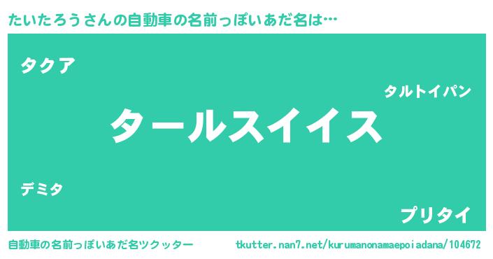 | 女子向けラノベタイトル風あだ名 | 『たいたろうの玉の輿計画!』 |