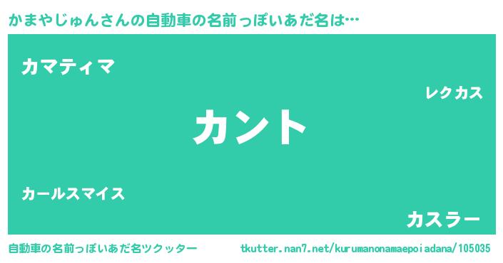 | 男性向けラノベタイトル風あだ名 | 『かまやじゅんの嫁は女の子じゃないと思った?』 |