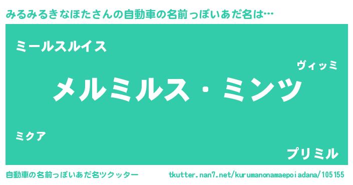 | 男性向けラノベタイトル風あだ名 | 『Re:みるみるきなほたから始める異世界生活』 |