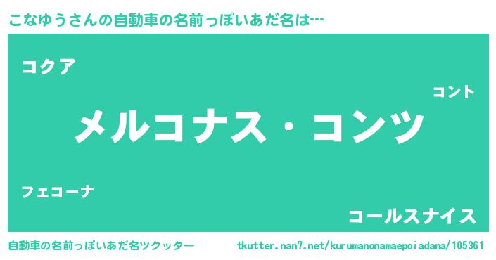 | 女子向けラノベタイトル風あだ名 | 『闇のこなゆう』『こなゆうの雑貨屋さん』 |