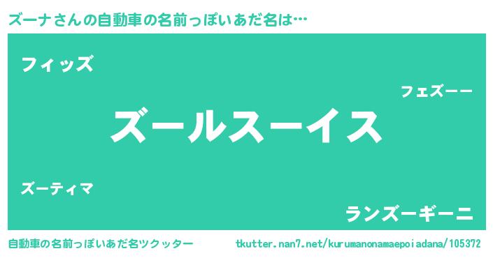 | 男性向けラノベタイトル風あだ名 | 『転生したらズーナだった件』 |