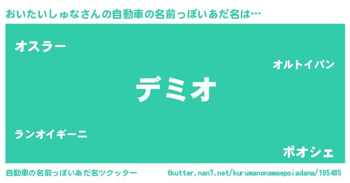 | 男性向けラノベタイトル風あだ名 | 『おいたいしゅなという概念が存在しない退屈な世界 』 |