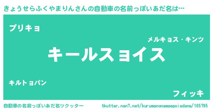 | 欧米人風あだ名 | 『トリンドルきょうせらふくやまりん』 |