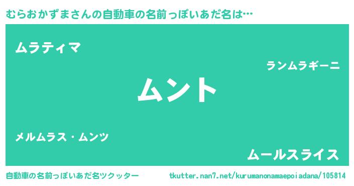 | 男性向けラノベタイトル風あだ名 | 『むらおかずまの嫁は女の子じゃないと思った?』 |