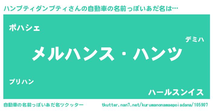 | 男性向けラノベタイトル風あだ名 | 『Re:ハンプティダンプティから始める異世界生活』 |