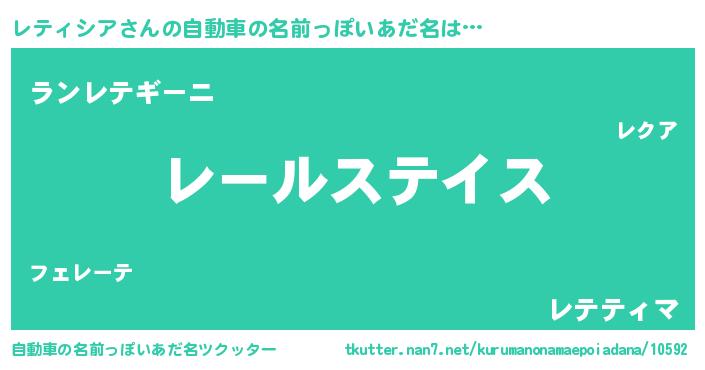 | 男性向けラノベタイトル風あだ名 | 『レティシア~年齢イコール彼女いない歴の魔法使い~』 |