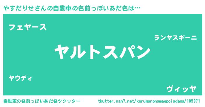 | 欧米人風あだ名 | 『ウサインやすだりせ』 |