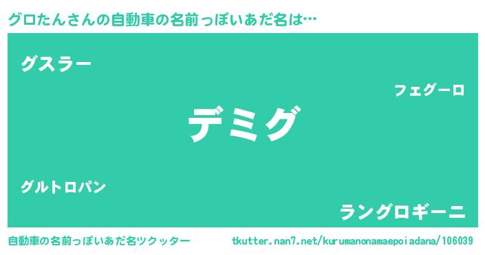 | ヒーロー風カッコイイあだ名 | 『ネオグロタン』『ウルトラグロたんマン』 |