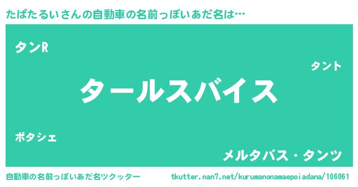 | 男性向けラノベタイトル風あだ名 | 『タバタルイスレイヤー』 |