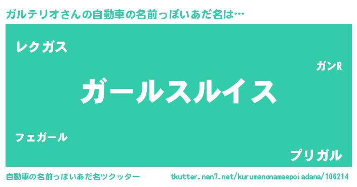 | 男性向けラノベタイトル風あだ名 | 『転生したらガルテリオだった件』 |