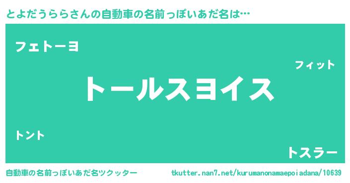 | 男性向けラノベタイトル風あだ名 | 『トヨダウララスレイヤー』 |