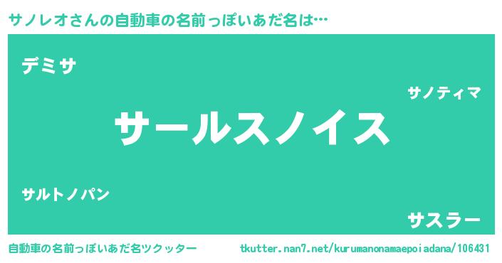 | 男性向けラノベタイトル風あだ名 | 『サノレオ~年齢イコール彼女いない歴の魔法使い~』 |