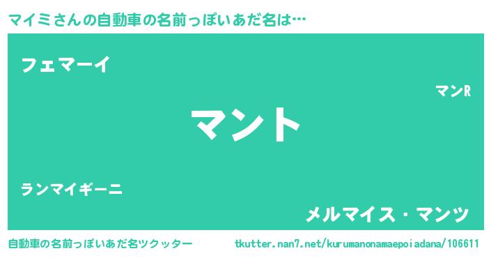 | 意味不明あだ名 | 『とにかく怪しいマイミ』『自称マイミ』 |