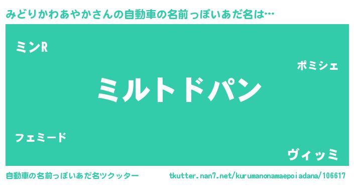 | 意味不明あだ名 | 『とにかく怪しいみどりかわあやか』 |
