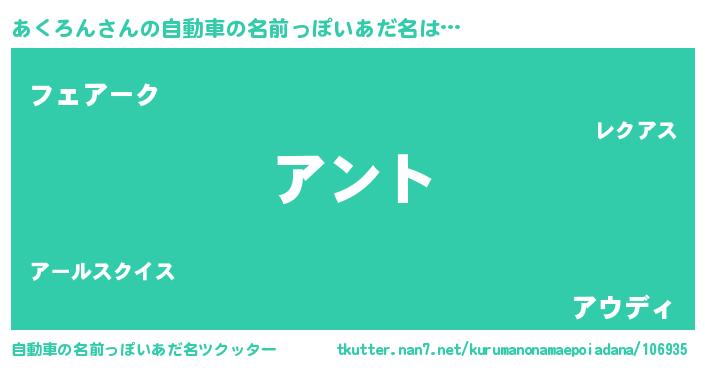 | 男性向けラノベタイトル風あだ名 | 『あくろんの嫁は女の子じゃないと思った?』 |
