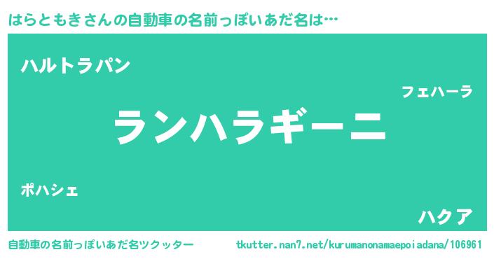 | 男性向けラノベタイトル風あだ名 | 『はらともきに滅ぼされるだけの簡単なお仕事です』 |