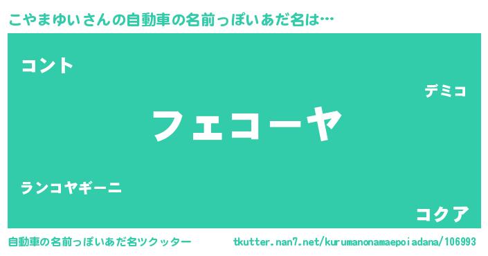 | 胡散臭い通販商品みたいなあだ名 | 『信頼と実績のサプリメント…その名も「こやまゆい」』 |