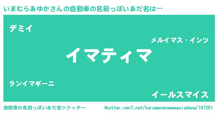 | ヘコむあだ名 | 『いまもー』『いまむらあゆか(震え声)』 |