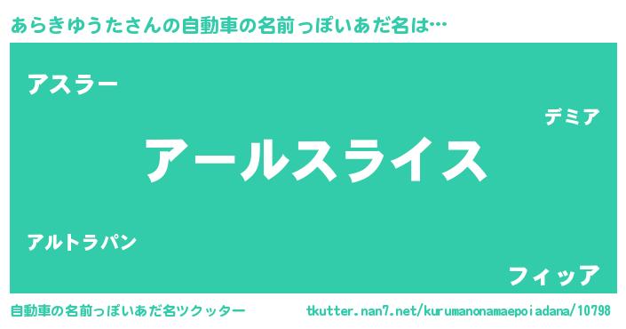 | 男性向けラノベタイトル風あだ名 | 『アラキユウタスレイヤー』 |