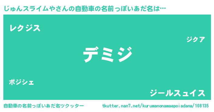 | 男性向けラノベタイトル風あだ名 | 『じゅんスライムやという概念が存在しない退屈な世界 』 |