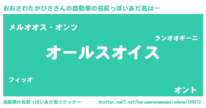 | 男性向けラノベタイトル風あだ名 | 『おおさわたかひさ~年齢イコール彼女いない歴の魔法使い~』 |