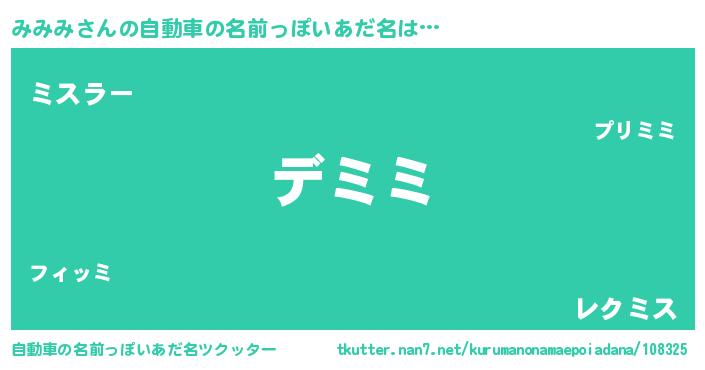 | 男性向けラノベタイトル風あだ名 | 『みみみという概念が存在しない退屈な世界 』 |