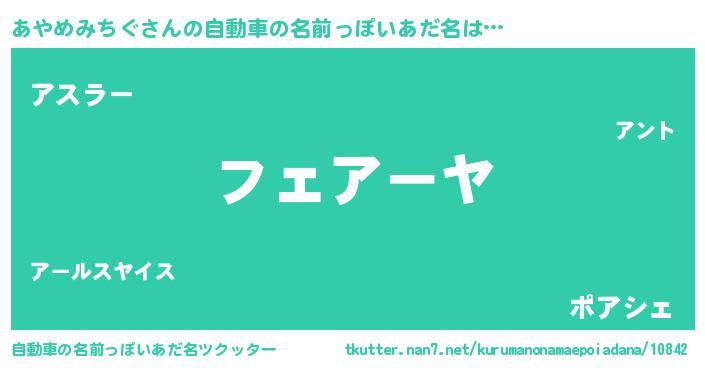| 意味不明あだ名 | 『あやめみちぐフォーエバー』 |