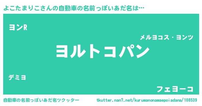 | 料理風あだ名 | 『よこたまりこの豆乳スープ』 |