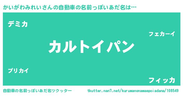 | 欧米人風あだ名 | 『ウサインかいがわみれい』 |