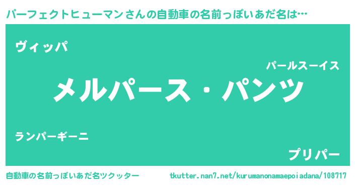| 男性向けラノベタイトル風あだ名 | 『Re:パーフェクトヒューマンから始める異世界生活』 |