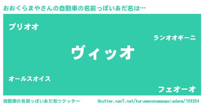 おおくらまやさんの自動車の名前っぽいあだ名をツクッター!