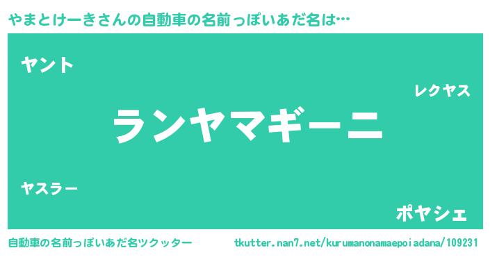 | 欧米人風あだ名 | 『アンジェラ・やまとけーき』 |