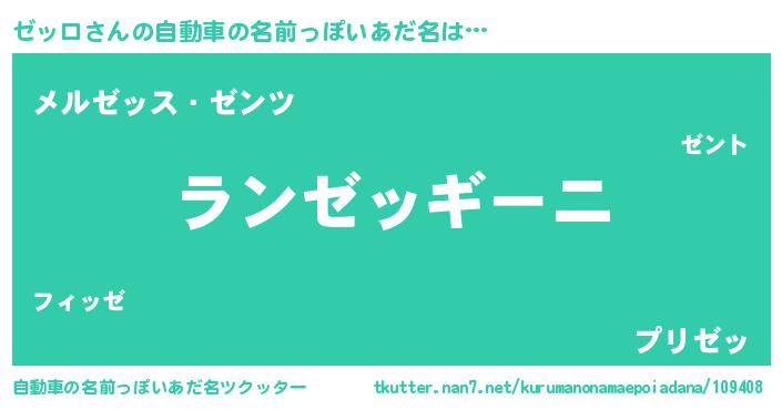 ゼッロさんの自動車の名前っぽいあだ名は… 『ランゼッギーニ』『メルゼッス・ゼンツ』『プリゼッ』 ツクッター #自動車の名前っぽいあだ名ツクッター http://tkutter.nan7.net/kurumanonamaepoiadana/109408/
