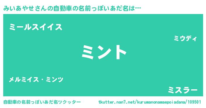 みいあやせさんの自動車の名前っぽいあだ名をツクッター!