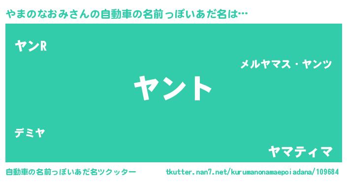 | 欧米人風あだ名 | 『ウサインやまのなおみ』 |