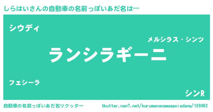 | 意味不明あだ名 | 『住所不定無職しらはい(85歳)』 |
