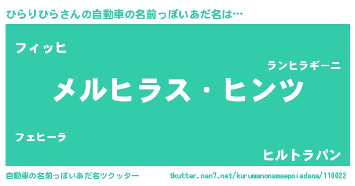 | ヘコむあだ名 | 『ひら太郎』『ひらりひら(苦笑)』 |