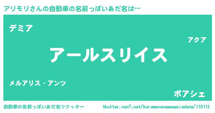 | 欧米人風あだ名 | 『トリンドルアリモリ』 |
