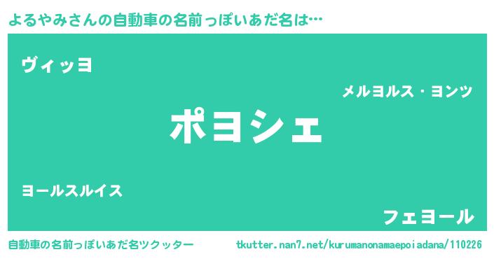 | ヘコむあだ名 | 『よるやみ(笑)』『よるを』 |