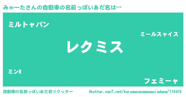 | 意味不明あだ名 | 『自称みゃーた』『なめこ科みゃーた属』 |