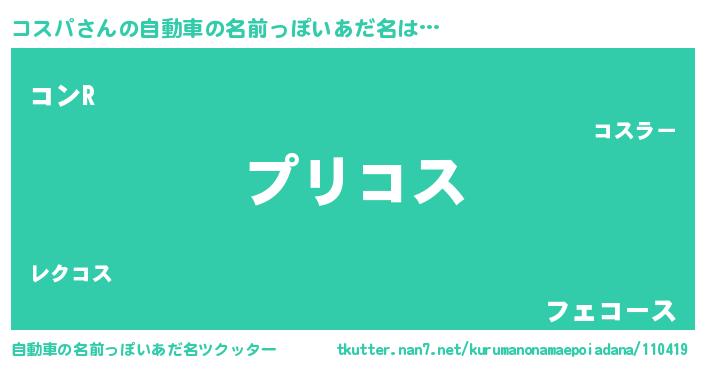 | 男性向けラノベタイトル風あだ名 | 『コスパの憂鬱』『緋弾のコスパ』 |