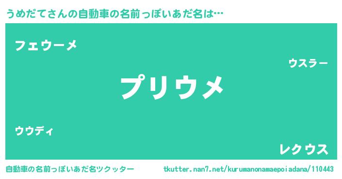 | 男性向けラノベタイトル風あだ名 | 『うめだての憂鬱』『魔弾の王とうめだて』 |