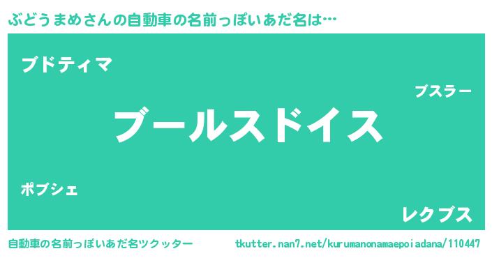 | 女子向けラノベタイトル風あだ名 | 『ぶどうまめの玉の輿計画!』 |