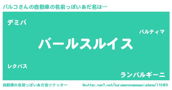 | 男性向けラノベタイトル風あだ名 | 『バルコスレイヤー』 |