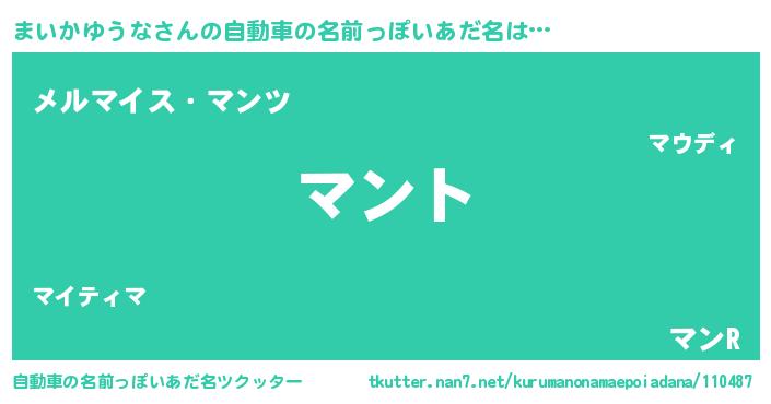 | 欧米人風あだ名 | 『ウサインまいかゆうな』 |