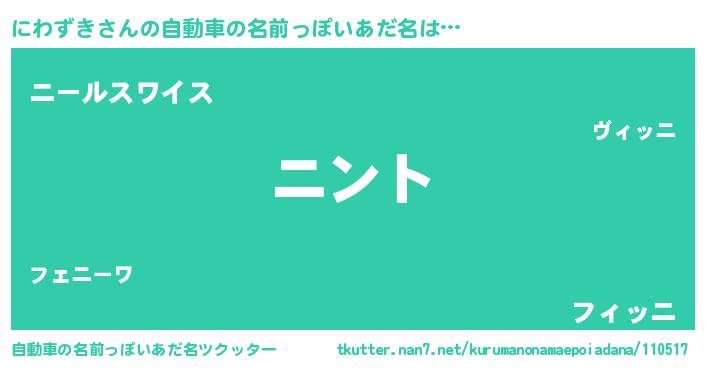 | 男性向けラノベタイトル風あだ名 | 『にわずきの嫁は女の子じゃないと思った?』 |