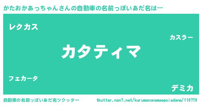 かたおかあっちゃんさんの自動車の名前っぽいあだ名をツクッター!