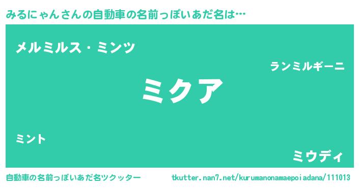 | 欧米人風あだ名 | 『みるにゃんクリステル』 |