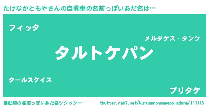 | 女子向けラノベタイトル風あだ名 | 『たけなかともやの卵を拾いまして』 |